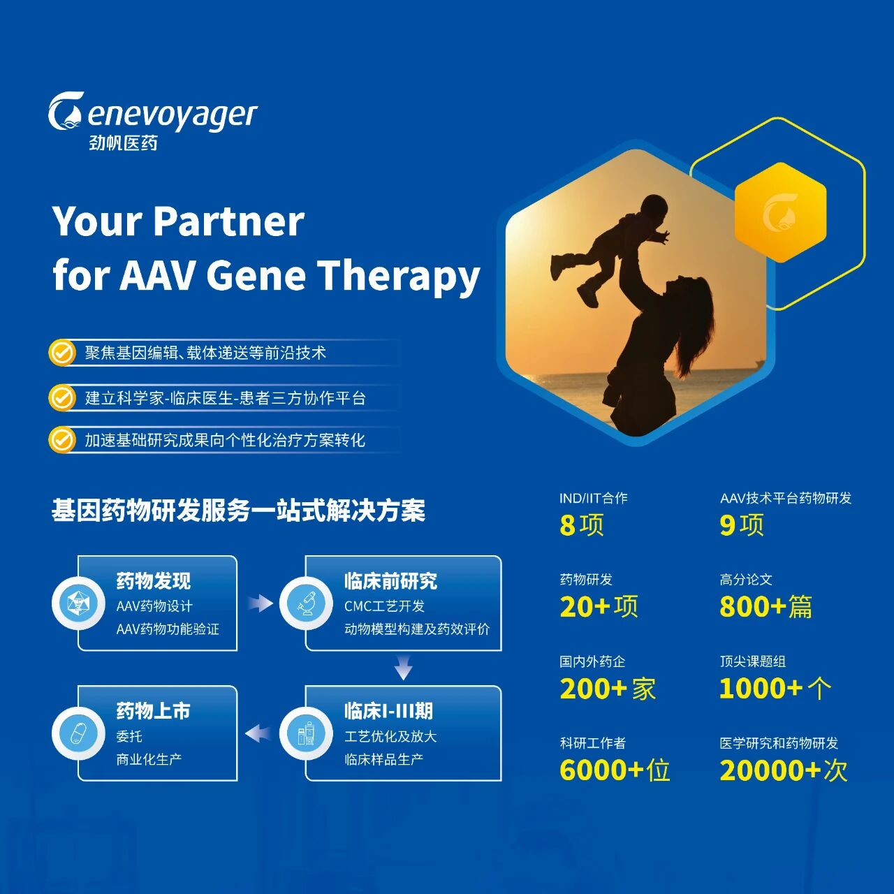2025年,劲帆医药凭着多年基因药物研发服务经验、数万次基因药物科研合作服务、领先的昆虫系统生产工艺以及扎实稳定的质量体系,携手顶尖科学家、一线临床研究者共同探索AAV基因药物研发和罕见病个性化治疗。