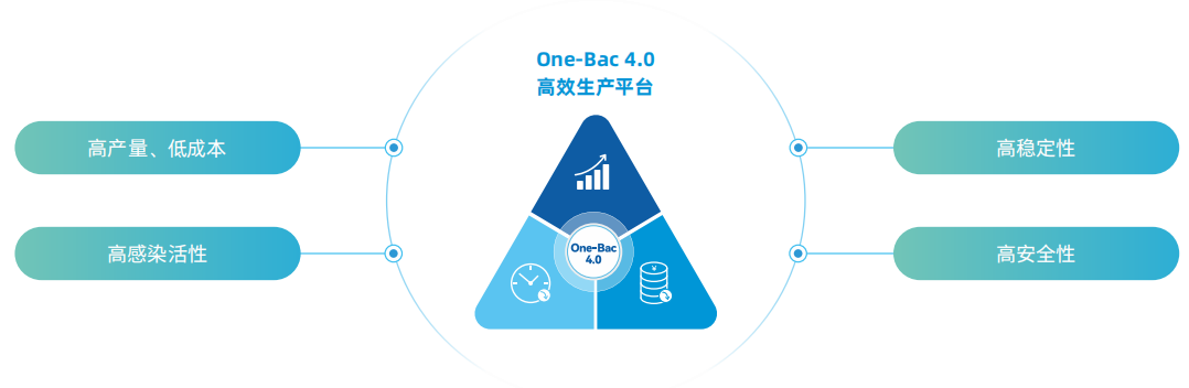 One-Bac 4.0系统采用的杆状病毒表达载体(Baculovirus ExpressionVector,BEV)在10代以内的传代稳定性高,确保大规模生产时,AAV批次间高产率和高病毒活性的特征不变。