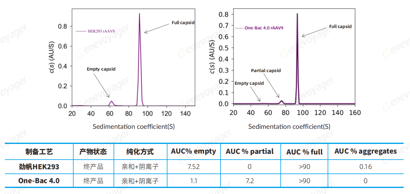 One-Bac 4.0系统⽣产的AAV杂质少,⽆rcAAV残留。