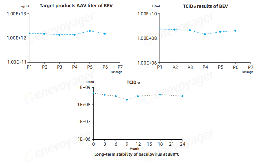 One-Bac 4.0系统采用的杆状病毒表达载体(Baculovirus Expression Vector, BEV)在多代次内的传代稳定性高,确保大规模生产时,AAV批次间高产率和高病毒活性的特征不变。