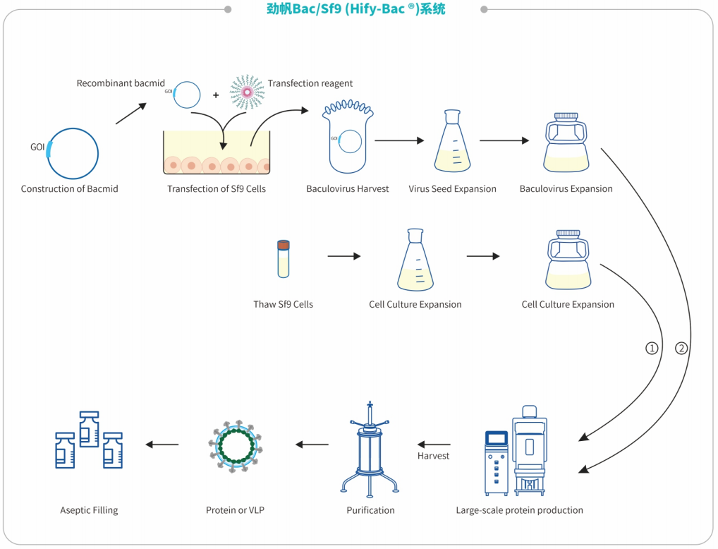 劲帆Bac/Sf9(Hify-Bac ®)系统已在人用疫苗、动物疫苗的生产中进行测试,展现出高产、快速表达和可规模化生产的优势。