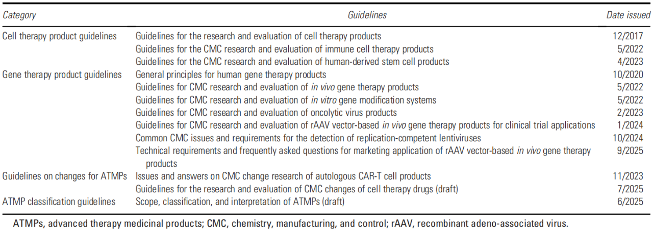 表1 中国先进治疗用药品的化学、生产与控制指南
